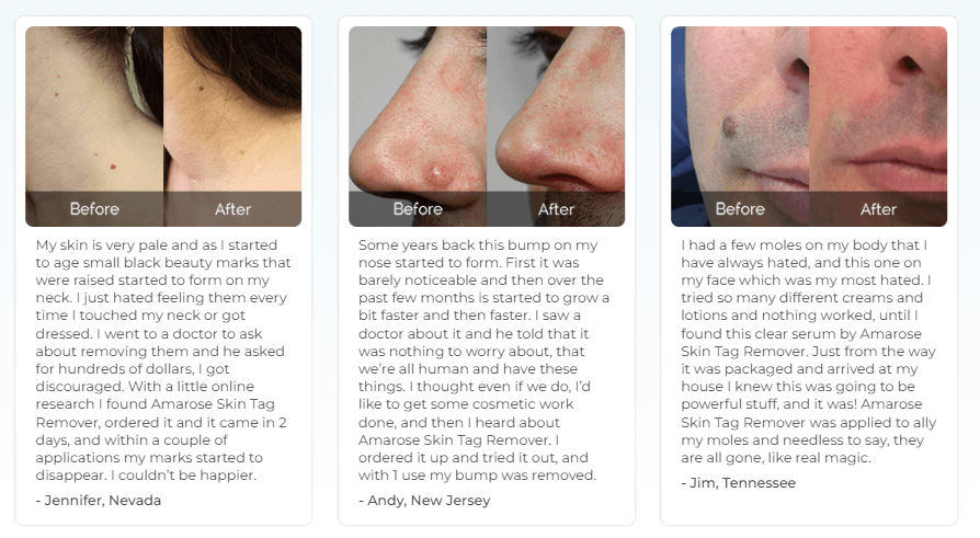 Amarose Skin Tag Remover has been designed for all ages and medical conditions. All of the ingredients inside of Amarose Skin Tag Remover have been generally considered to be safe, and are constantly tested for purity and to ensure against toxins and contaminants. Moreover, Amarose Skin Tag Remover is manufactured in an FDA-approved facility, under sterile, strict and precise standards.